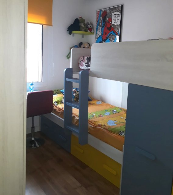 Salón de 20 m2 con cocina abierta. Patio delantero de 30 m2. trasero. 2 Habitaciones. Baño con ducha y mampara. . doble pared en salón